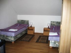 |  |  |  | | Služby objektu |  | Celkem lůžek: | 8 + 6 přistýlek |  | Počet dvoulůžkových pokojů: | 4 |  | Sociální zařízení: | WC a koupelna v každém apartmánu |  | TV: | V každém apartmánu TV |  | Stravování: | Plně vybavená kuchyně v každém apartmánu |  | Společenská místnost: | Obývací pokoj s krbem v každém apartmánu |  | Úschovna lyží: | ANO |  | Úschovna kol: | ANO |  | Venkovní posezení: | Zahradní posezení s ohništěm |  | Vhodné pro rodiny s dětmi: | ANO |  | Domácí zvířata: | ANO |  | Kouření v objektu: | NE |  | Parkování: | Přímo u objektu | | Ceny |  | Ubytování - zima: | 1200,- Kč / apartmán / noc |  | Ubytování - léto: | 1200,- Kč / apartmán / noc |  | Ubytování - mimosezóna: | 1200,- Kč / apartmán / noc |  | Poplatek za domácí zvíře: | 60,- Kč / noc |  | Doplněk k ceníku: | Ceny platí pro pobyt v délce 7 a více nocí. Pobyt v délce 2-6 nocí: 1350 Kč / apartmán / noc. Minimální délka pobytu: 2 noci. V ceně je zahrnuto DPH, přiměřená spotřeba elektrické energie, vody, dřeva pro topení v krbu a na venkovním ohništi a místní poplatky odváděné obci. | | Interier objektu |  |  |  |  |  |  |  |  |  | |